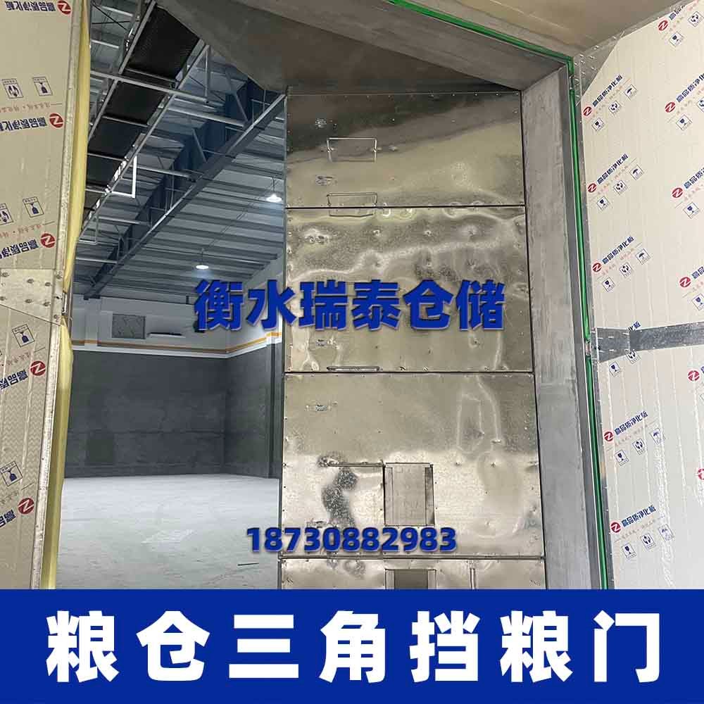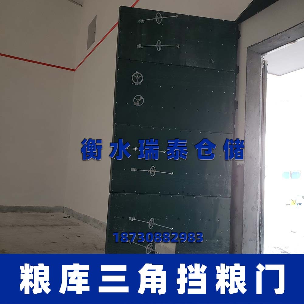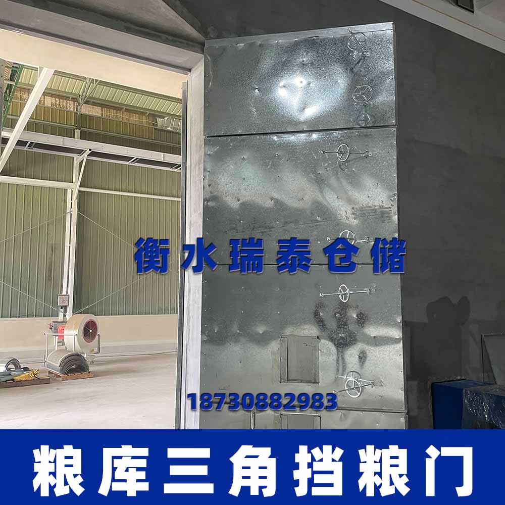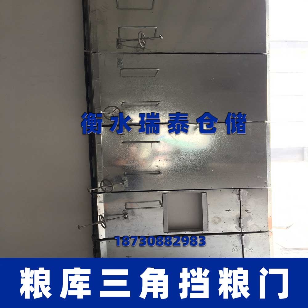 三角擋糧門由底節(jié)、頂節(jié)及中節(jié)組成,每節(jié)含對(duì)稱兩扇門扇,關(guān)閉后形成三角形結(jié)構(gòu),可抵御糧食堆積側(cè)壓力,保障倉(cāng)內(nèi)儲(chǔ)糧安全。